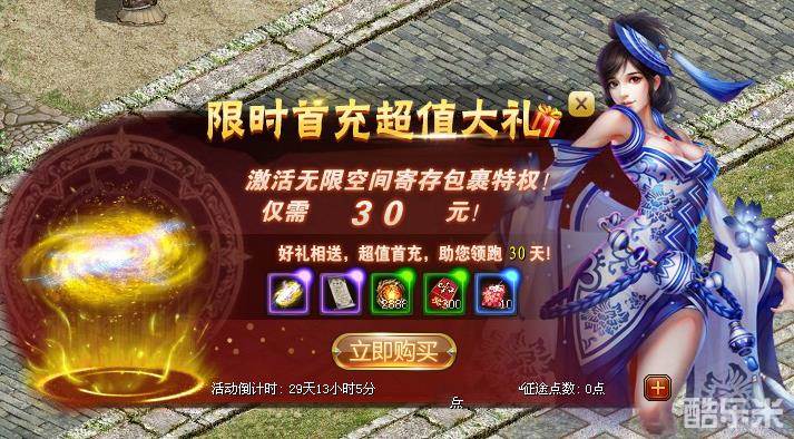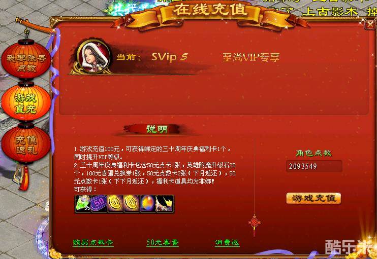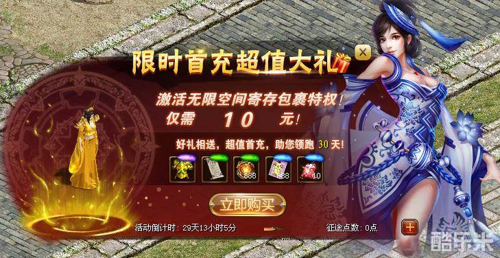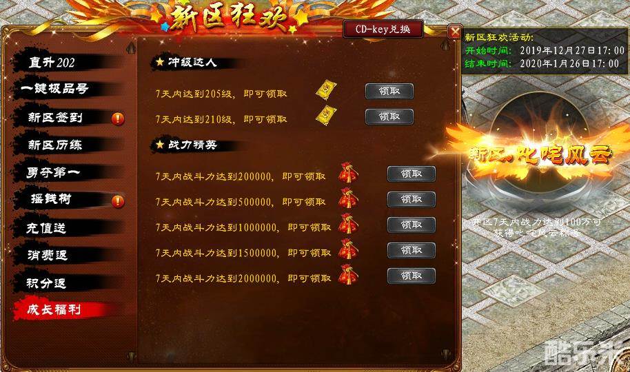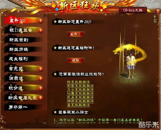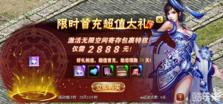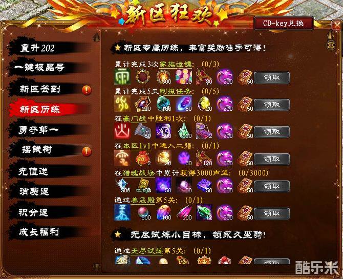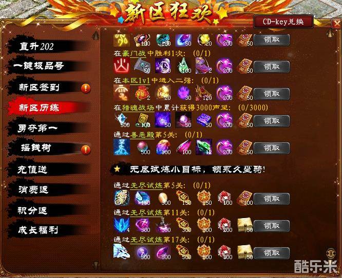 入驻新区充值消耗账号点数,达到不同额度,就可领取海量超值道具!