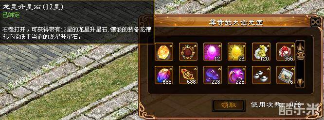 新区红包商城奖励:13龙星升星石、13孔龙槽仅需1元红包点数;永久神器-护腕、周年狂欢套装加入新区红包商城。