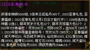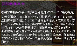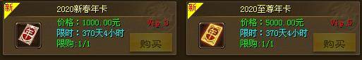 2020年全新的新春年卡和至尊年卡上线!海量珍稀道具,鼠年限量套装-称号,满足玩家各方面需求,是您2020开年不容错过的年度厚礼。