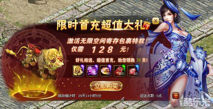 活动期间,玩家每天登陆新区,都可以在游戏屏幕上方“新区首充”活动广告牌中购买首充大礼包,无需等待时间,可一次性购买全部首冲礼包。具体礼包内容如下: