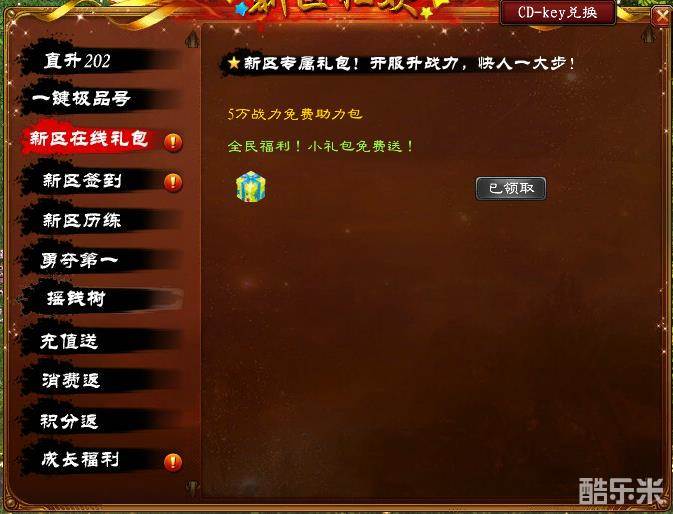 福利第三重——新区在线礼包