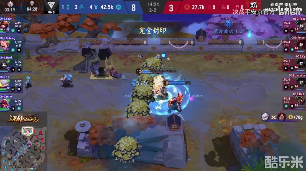 第三把ODG的状态开始回暖,摒弃前两把的防守策略,开始与OMG激烈对拼。