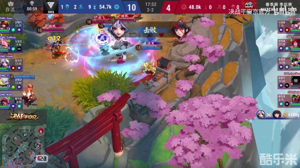决定比赛胜利的高光属于OMG的中单白藏主,比赛来到接近18分钟的时刻,OMG白藏主深入敌后单杀对方射手桔梗,面对四面八方赶来的OMG其余众人,ODG至此宣告比赛结束。