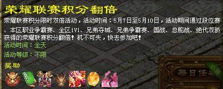 活动2、荣耀联赛积分翻倍
