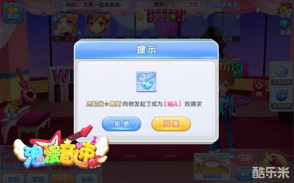 两名异性玩家在结为密友后任意一方在同一个房间里点击对方模型后弹出关系按钮,点击成为恋人后可发起成为恋人请求(要求亲密等级达到3级)