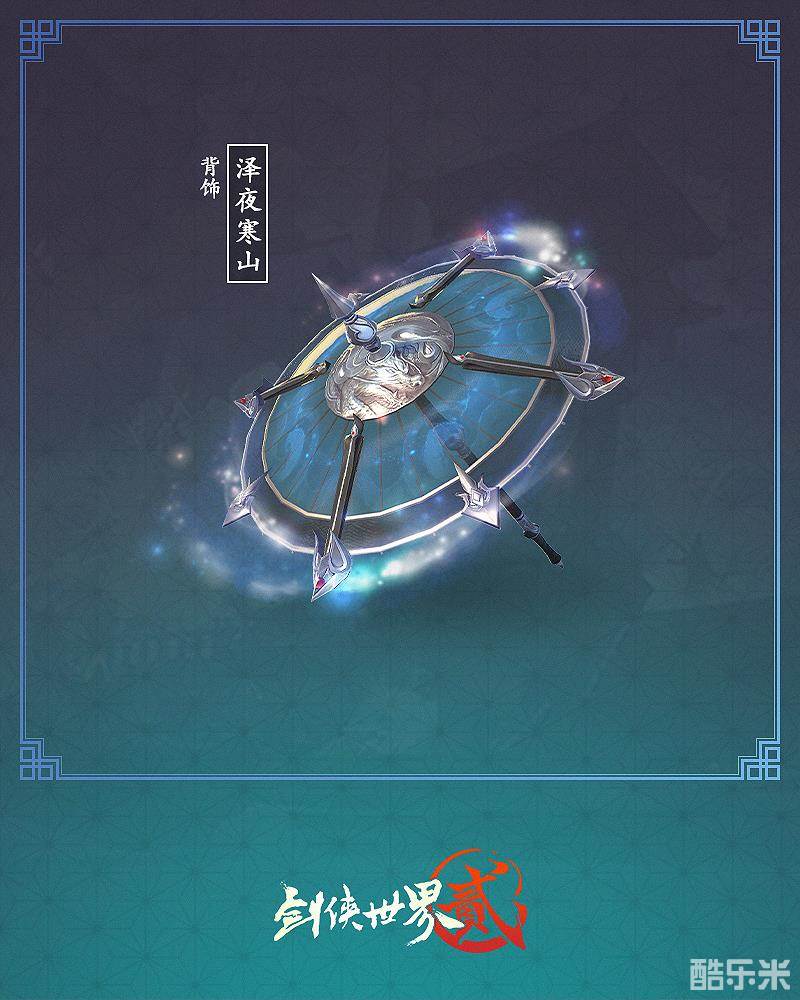 除了英姿飒爽的寒甲时装与飘逸潇洒的配套发型之外,本次外观活动还有全新伞“泽夜寒山”与双人特效坐骑“飏影逾辉”!精致罗伞动作特效背饰“泽夜寒山”以孔雀蓝为主体配色,采用极具金属质感的利刃装饰,伞面花纹如烟如雾,缭绕似仙,给人以凌虚缥缈之感。更加令人惊喜的是,当开启动作特效后,少侠可持伞漫步,亦可与其他少侠进行交互!