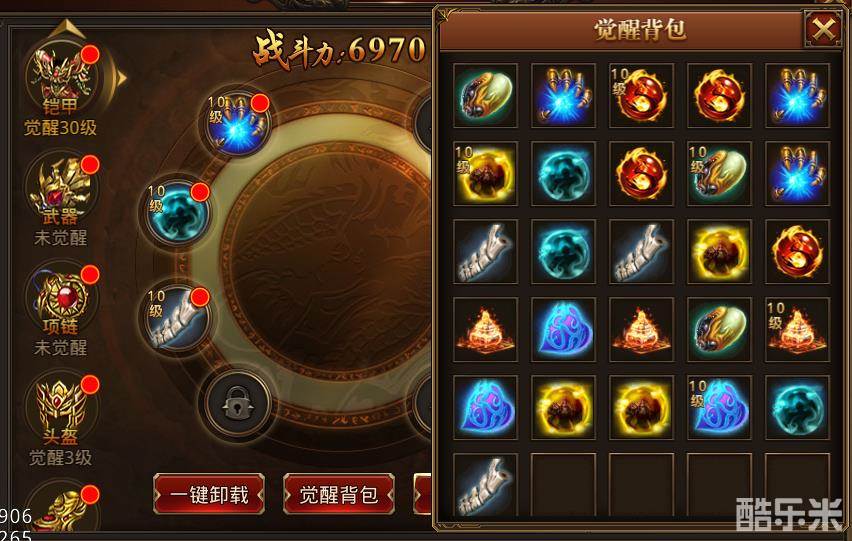 每个明装部位新增一套装备共8件,觉醒装备有单独的觉醒背包,每件装备可以通过再生提升等级,装备位需要通过提升心法等级解锁。