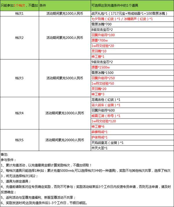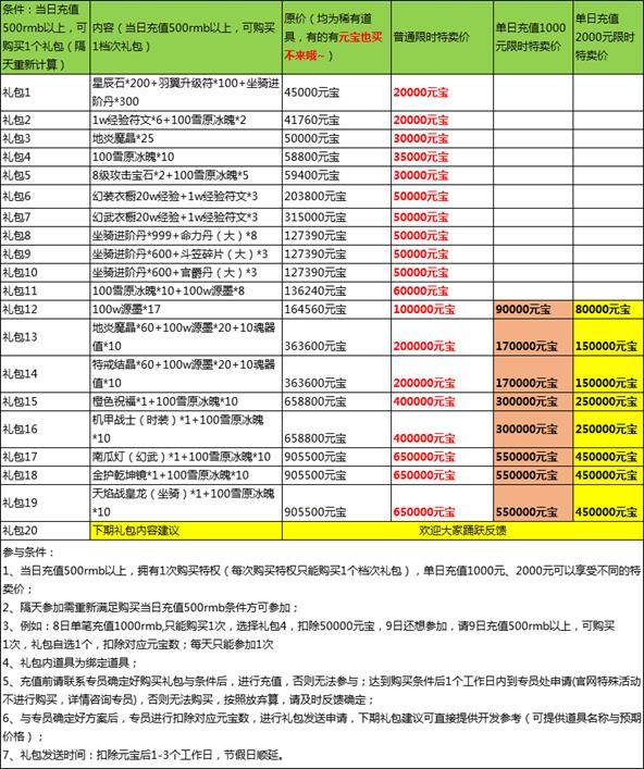 6、充值前请联系专员确定好购买礼包与条件后,进行充值,否则无法参与;