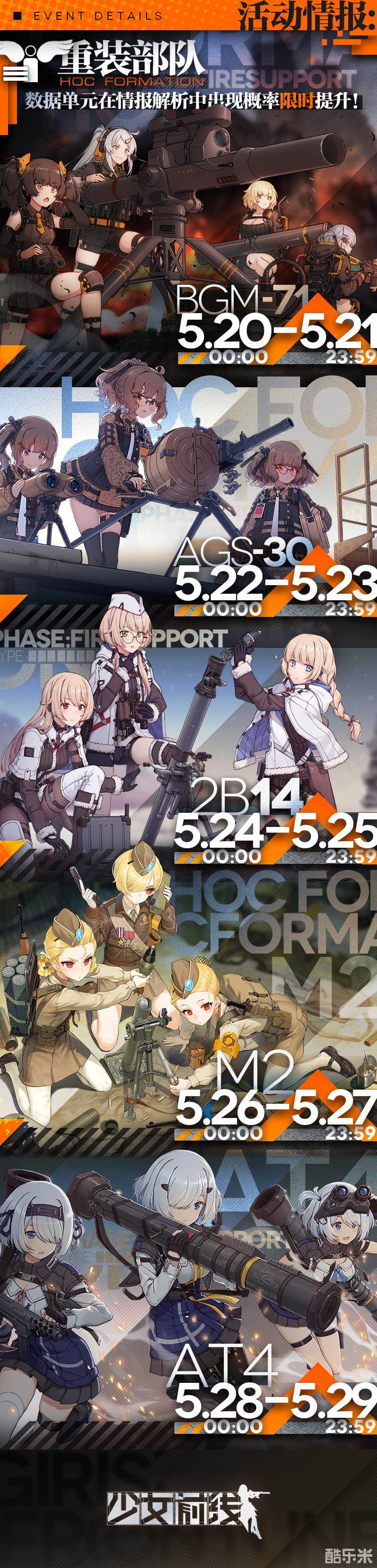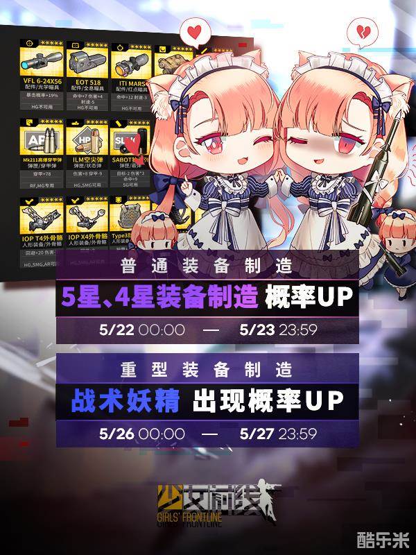 5月24日~5月25日,重型人形制造中四星及五星霰弹人形出现概率提升;