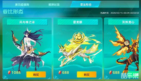 活动内容:本周上新夏日好礼·亚比形态!风与林之诗形态、雷龙狼形态等酷炫形态等你选购哦!