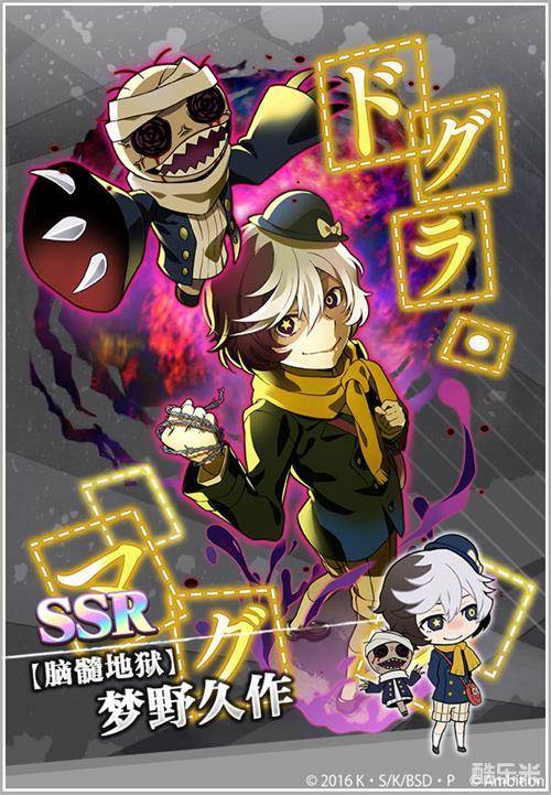 卡面立绘极具冲击力,梦野久作天真无辜的眼神搭配身后的异能人偶,看似人畜无害,又仿佛在下一时刻就要释放强大的幻觉异能。这张卡将开启限定概率UP扭蛋,喜欢的小伙伴要记得抽取哦。