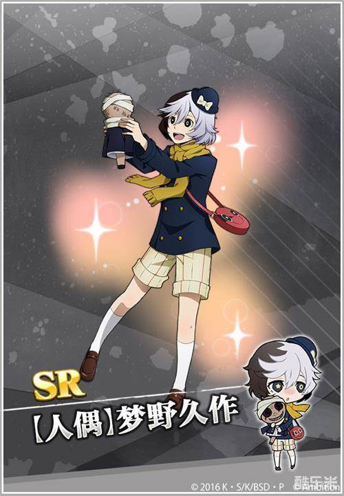 除了SSR卡牌之外,游戏中同样加入了SR【人偶】梦野久作,相比于SSR卡立绘的恢弘酷炫,SR卡的画风则显得更加可爱和日常。手里拿着人偶、开心地露出笑容的梦野久作简直不要太可爱~