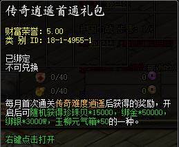 传奇逍遥谷难度降低,并且每月首通会获得额外的首通宝箱。