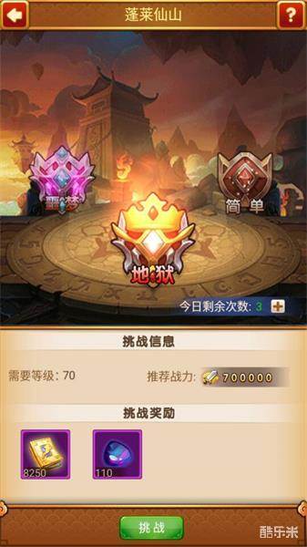 挑战条件:神将到达20级可开启副本,每十级解锁一个新难度。