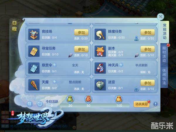 更新后击杀天兵天魔不再获得活跃值;竞技场调整为每获胜一场获得10活跃值,上限提高至20活跃值,少侠可以更轻松达成满活跃奖励。