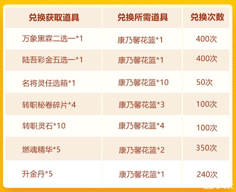 2.「康乃馨花篮」、「康乃馨」可以兑换各种高级稀有资源,详情请登录游戏查看。