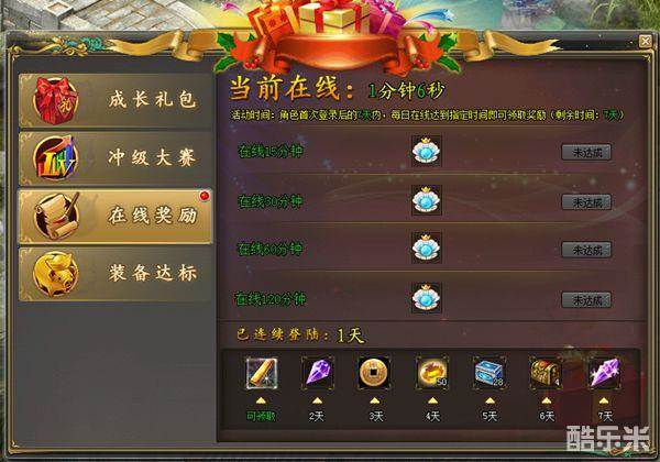 每天登录游戏,不做事也有奖励,快来试试吧!角色首次登录后的7天内,每天持续在线达到15分钟、30分钟、60分钟、120分钟,或连续7天登录,都能分别领取免费好礼,珍珠贝、绑金、9级玄晶、雨花石、蕴灵材料、2级魂玉、各种好礼应有尽有。