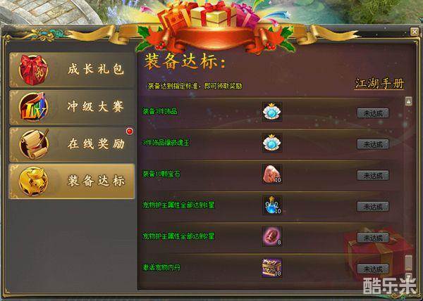 战力不够?装备达标助君一臂之力!只要装备达到指定标准,即可领取丰厚奖励!珍珠贝、8级玄晶、蕴灵材料、雨花石、昆山石、月华露、等各类稀有奖励让你战力持续UP不掉队!