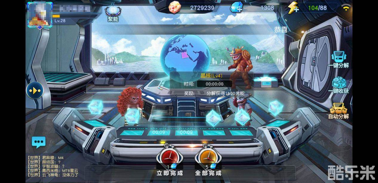 同时辅助科技储能装置会影响萌兽体力,体力为200上限/星,五星之后共1200体力上限,每次消耗100体力可以加速矿石分解时间。