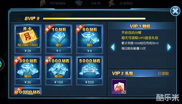 悄悄拿出攒的私房钱充的VIP6,储能装置,能够提升每次自动分解次数上限,总的来说还是挺不错的但是花费也比较高,建议没能力的就V4,有能力的直接V7。