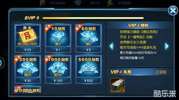 搬一天砖换来的VIP4,一键帮助也没啥用,小编看上的是这个德拉克炮这个东西,可以增加每天免费扫荡次数,到了后面扫荡十次要200钻石,哇,这一算下来,四舍五入就省了一个亿啊,还有世界聊天功能,有了这个功能,你就可以在世界频道为所欲为,diss策划,聊天撩妹美滋滋。
