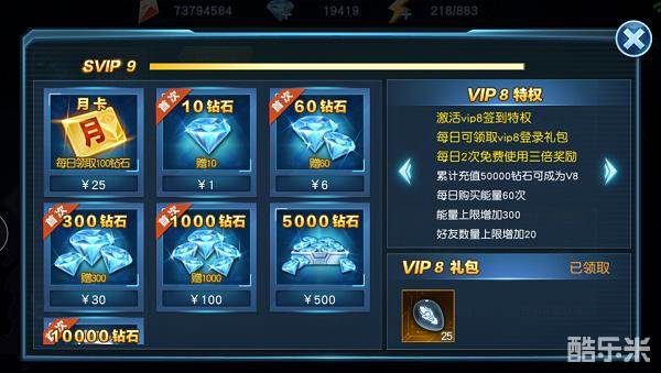 吃了一个月土换来的VIP8,这个签到特权还是可以的,可以获得梦比优斯碎片,加速梦比优斯的升星,毕竟光靠抽的太看运气了,而且免费的三倍组队奖励变成了2次,啧啧啧啧,我有点心动了。