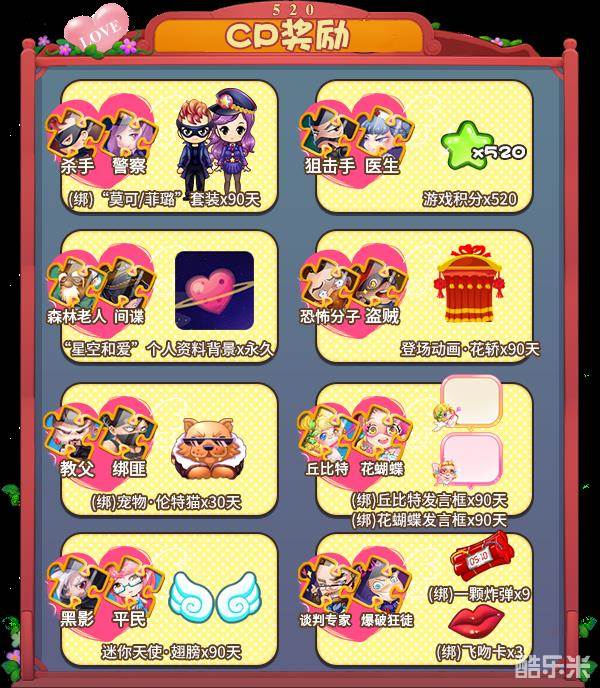 属于最佳推理家的嘉奖:活动开始后,第一位推理出正确答案的玩家,将会和伴侣(若有)分别获得“飞吻卡x520”作为奖励!