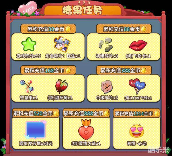 在活动期间,充值“糖果任务”所需的金币,即可领走对应礼物!