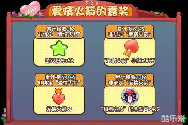 每局累计获得4份奖励:额外随机赠送一份:流星雨、跑车、爱情火箭