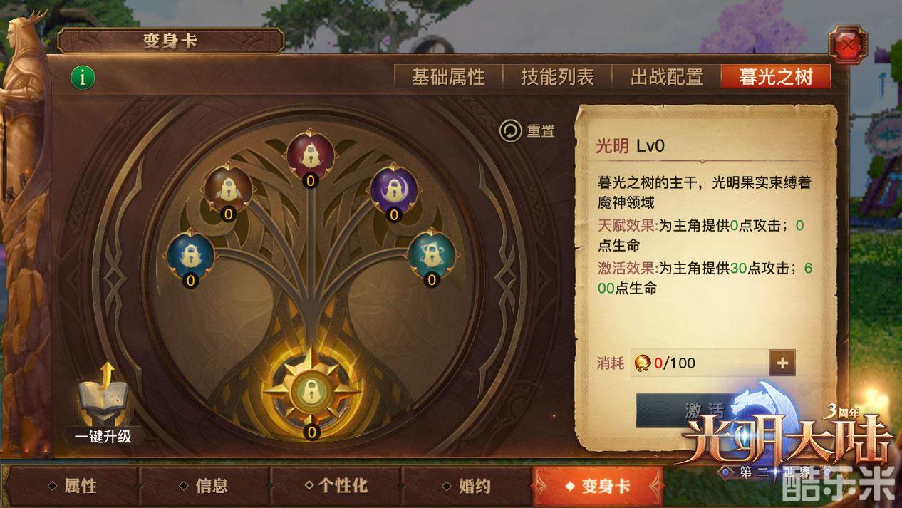 全新养成系统暮光之树开启。通过培养暮光之树,玩家可以提升自身以及在变身卡战斗中的属性。