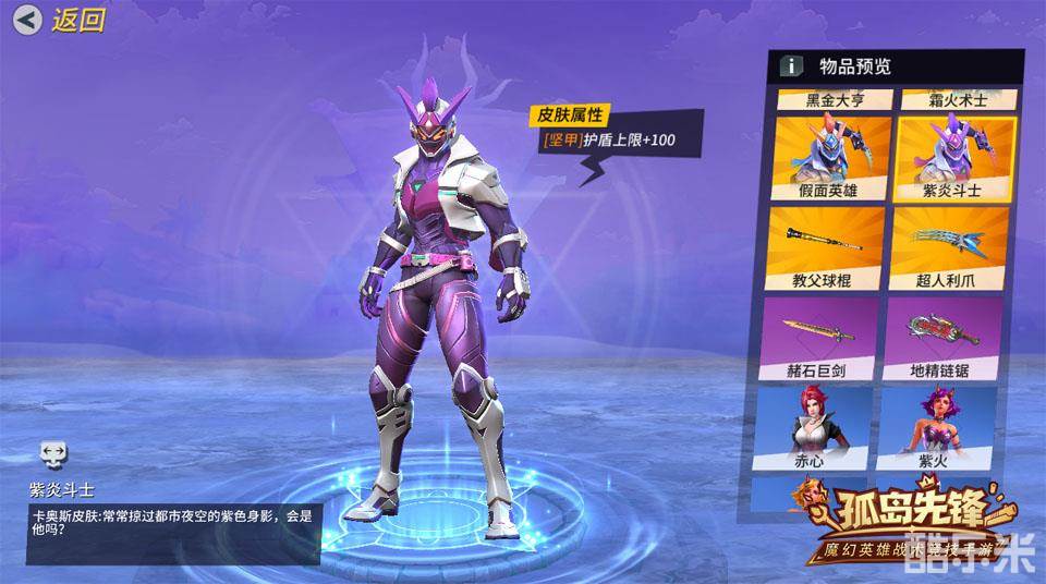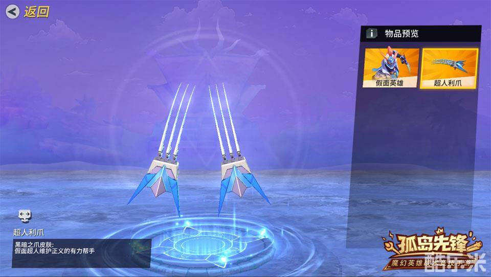 开启假面英雄礼包即有机会获得黑暗斗士传奇皮肤“假面英雄”、黑暗斗士传奇皮肤“紫炎斗士”、专属武器皮肤“超人利爪”以及其他皮肤奖励。如果说“假面英雄”象征着卡奥斯沉稳的一面,那么“紫炎斗士”则更突出了他亦正亦邪的气质。