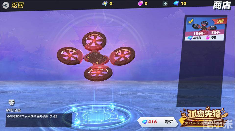 四轮驱动,却并非陆地上的载具,飞行器在《孤岛先锋》的世界里亦是科幻朋克派最为喜爱的道具之一,这款“骄阳涂装”皮肤乍看朴素简洁,但却能够散发红日之光,装备之后给人一种英雄自骄阳中走出的视觉效果。