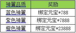 活动内容:活动期间内,神翼达到特定等级,将获得额外绑定元宝。