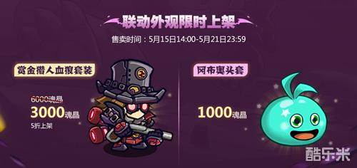 此外,联动主题外观也将于同期上架公会商店。帅气的赏金猎人血狼套装5折开售,仅需3000魂晶。另有冈布奥头套,1000魂晶便可收入囊中~