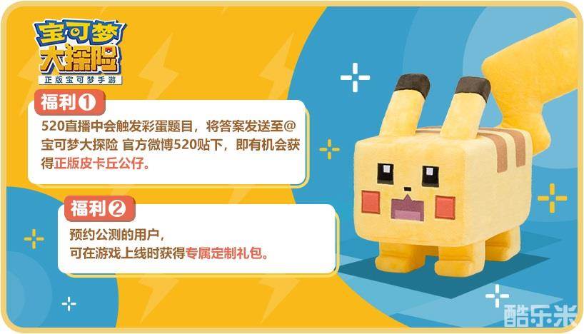 此次520游戏热爱日发布会为线上直播,将于5月20日19:30开始直播,届时《宝可梦大探险》也将继续给探险家们带来福利——直播过程中,将有多个彩蛋题目弹出,探险家们只需将答案发送至@宝可梦大探险 官方微博520贴下,就有机会获得正版皮卡丘公仔!