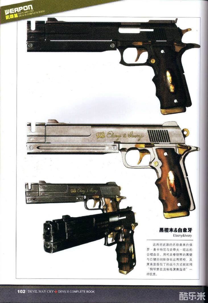 作为主角但丁最常使用的武器之一,黑檀木与白象牙在战斗能力上虽然不如恶魔灵魂所化作的魔具那般强大,然而其包含的友情与亲情,对于但丁来说是弥足珍贵的。这也正是《鬼泣》系列游戏中,但丁从未更换过佩枪的原因。