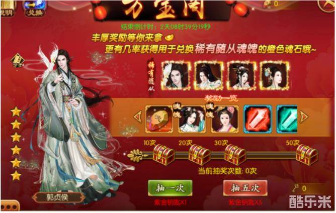 1、活动期间,小主们可前往游戏屏幕右下角的“限时活动”,点击“万宝阁”即可查看并参与活动。次数达成进度奖励未领取,则视为主动放弃奖励。紫金钥匙可用于下次万宝阁活动中。