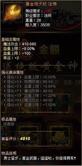 超拉风外形的,超高属性,你值得拥有!等级达到40级以后即可穿戴