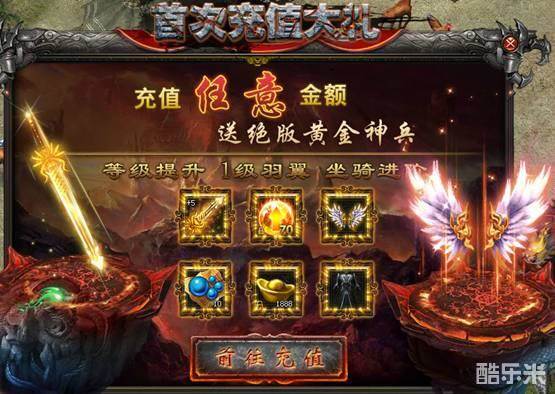 首冲礼包内容:40级黄金神器*1(对应职业)、直升一级丹(70级)、兽鬼披风(3阶)、坐骑进阶丹*10、绑定元宝*1888、绑定金币*200W