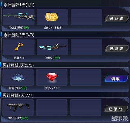 活动内容:在活动期间内累计登陆即可获得相应奖励,最终可获得全新武器【ORIGIN12(永久)】