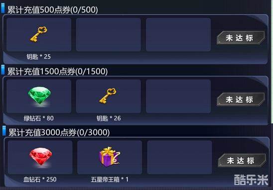 活动内容:活动期间累计充值一定金额可获得钻石、军备库钥匙和五星帝王箱