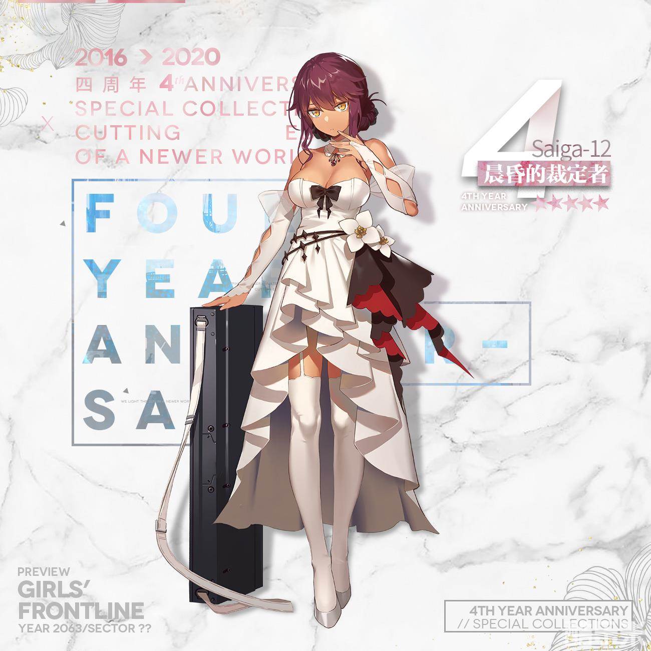 亲爱的指挥官们,现在为您带来2020年四周年礼服装扮“盛宴奏鸣曲”介绍第三期,本期采购主题将于5月20日0点开放!今天为大家介绍的是Saiga-12“晨昏的裁定者”、QBU-88“自然的探索者”、KSVK“楚门的旅行者”和M1911“天空的击破者”,其中Saiga-12“晨昏的裁定者”将在后续搭载Live2D功能!光影流离,面对盛装出席的少女,愿您能享受此刻的欢愉!详细请您查看下面的图片!