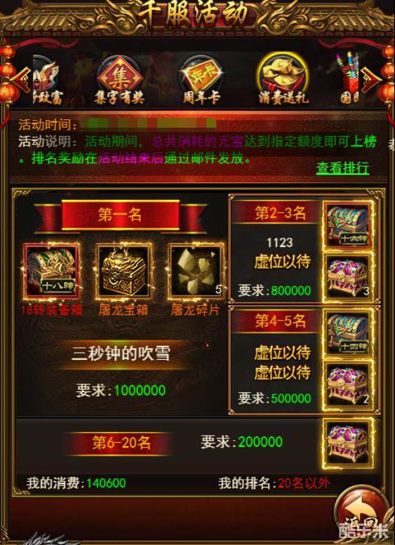 活动期间,总消耗的元宝达到指定额度即可上榜,排名奖励在活动结束后通过邮件发放。