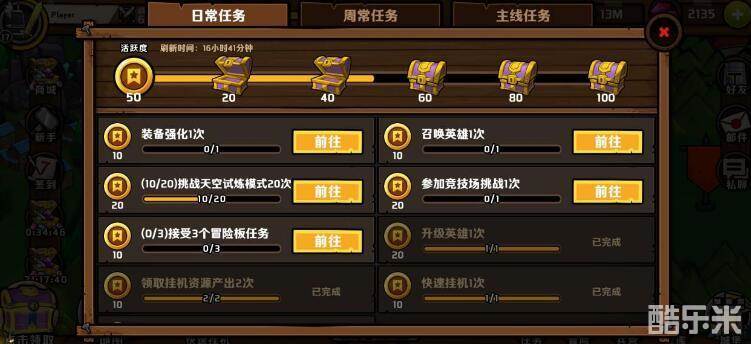 9、升级一次英雄。可以留一些低级的卡每天升级一次完成任务,完成后可获得20点活跃度