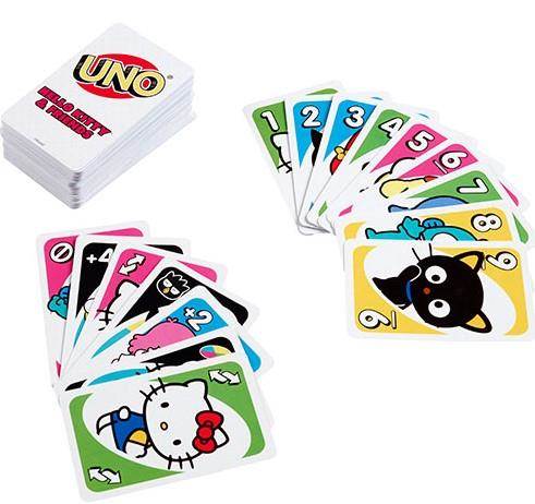 在功能牌的设计上,Uno Hello Kitty加入了Hello Kitty的朋友们——My Melody、Pochacco、Keroppi、Kiki、Lala、Tuxedo Sam。