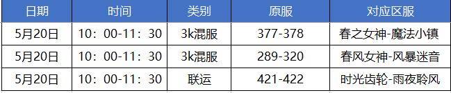 合服时间:5月20日10:00-11:30(可能会根据实际情况顺延)