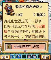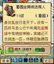 玩家离开新手村后,下一张地图会出现一个送坐骑的任务—“[坐骑]送啦!送啦!”。