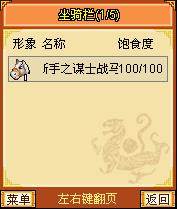 骑上坐骑进行战斗,坐骑会和您一起升级,给您更多的属性加成。坐骑如果饱食度为0时玩家就不能骑乘了,要找坐骑商人买坐骑口粮进行喂养方可骑乘,更好的宠物口粮可以在商城买到!