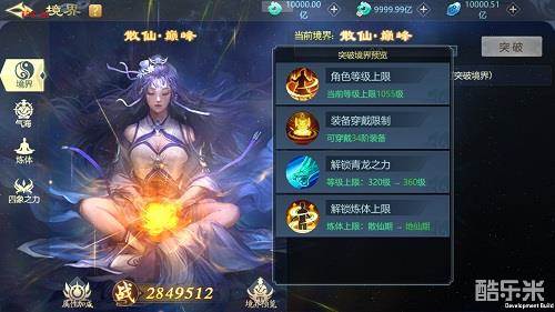 修炼路上别忘了提升境界!玩家达到指定等级、战力、气海值,打通相应副本,收集指定道具,就能提升角色境界,提高各种玩法的上限,获得更大的养成空间。同时,也能通过境界系统自带的四象之力和炼体功能,大幅提高自己的各项属性。