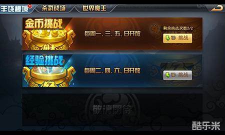 除了上面两种,还有通过游戏中的限时活动丰饶秘境的金币挑战可以获得大量金币。金币挑战开放时间为每周一、三、五、日开放,每次开放的时候有2次挑战机会,每次进入需要消耗10点的体力。